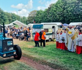 Das diesjährige Vatertags- und Familienfest wurde nach zwei Jahren Coronapause vom Mühlenverein Oberaußem und in neuer Zusammenarbeit mit den Traktorfreunden Rheidt-Hüchelhoven auf dem alten Sportplatz in Oberaußem veranstaltet. In der Vorbereitungszeit entschieden beide Vereine, dem Verein TheraKids in Büsdorf mit einer Spende zu unterstützen. Der Mühlenverein pflegt seit längerer Zeit ein freundschaftliches Verhältnis zu TheraKids, der auf einem Reiterhof Kinder und Erwachsene mit geistigen und körperlichen Beeinträchtigungen ein erlebnispädagogisches Reiten anbietet. Im April startete TheraKids ein neues Projekt mit dem Gutenberg-Gymnasium, um Kindern aus Bergheim und der Ukraine ein paar schöne Stunden auf dem Reiterhof zu ermöglichen.