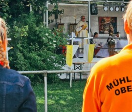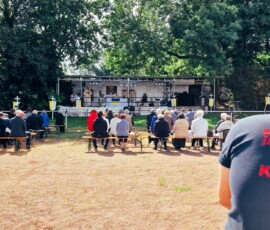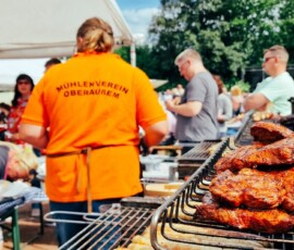 Das diesjährige Vatertags- und Familienfest wurde nach zwei Jahren Coronapause vom Mühlenverein Oberaußem und in neuer Zusammenarbeit mit den Traktorfreunden Rheidt-Hüchelhoven auf dem alten Sportplatz in Oberaußem veranstaltet. In der Vorbereitungszeit entschieden beide Vereine, dem Verein TheraKids in Büsdorf mit einer Spende zu unterstützen. Der Mühlenverein pflegt seit längerer Zeit ein freundschaftliches Verhältnis zu TheraKids, der auf einem Reiterhof Kinder und Erwachsene mit geistigen und körperlichen Beeinträchtigungen ein erlebnispädagogisches Reiten anbietet. Im April startete TheraKids ein neues Projekt mit dem Gutenberg-Gymnasium, um Kindern aus Bergheim und der Ukraine ein paar schöne Stunden auf dem Reiterhof zu ermöglichen.