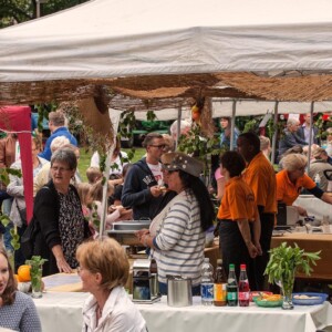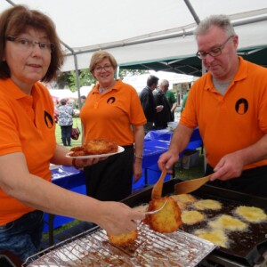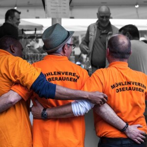 Das diesjährige Vatertags- und Familienfest wurde nach zwei Jahren Coronapause vom Mühlenverein Oberaußem und in neuer Zusammenarbeit mit den Traktorfreunden Rheidt-Hüchelhoven auf dem alten Sportplatz in Oberaußem veranstaltet. In der Vorbereitungszeit entschieden beide Vereine, dem Verein TheraKids in Büsdorf mit einer Spende zu unterstützen. Der Mühlenverein pflegt seit längerer Zeit ein freundschaftliches Verhältnis zu TheraKids, der auf einem Reiterhof Kinder und Erwachsene mit geistigen und körperlichen Beeinträchtigungen ein erlebnispädagogisches Reiten anbietet. Im April startete TheraKids ein neues Projekt mit dem Gutenberg-Gymnasium, um Kindern aus Bergheim und der Ukraine ein paar schöne Stunden auf dem Reiterhof zu ermöglichen.